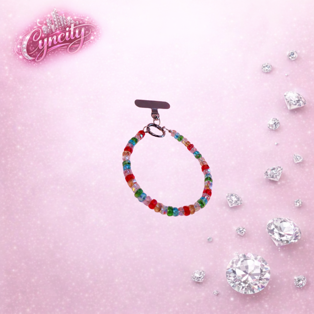 Dit handgemaakte telefoonkoord met prachtige, kleurrijke kristallen vangt het licht bij elke beweging. De speelse combinatie van tinten zorgt voor een vrolijke, maar toch elegante uitstraling die moeiteloos past bij elke outfit – van casual tot feestelijk.